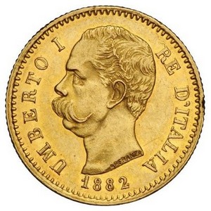 Il Marengo Italiano Umberto I è stato coniato dal 1879 al 1897 in modo discontinuo dalla zecca di Roma, che produsse poco più di 8 milioni di esemplare con il profilo di Umberto I, figlio del primo re d’Italia Vittorio Emanuele II nel 1878.